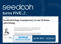 When the AFR announced Seedooh’s launch as a ‘new start-up’ in July 2017 it could be said that Seedooh was an early innovator, if not first, to address this market requirement at scale. Either way – that was 5 years ago and with OOH Verification now a hot topic in many developed markets, to celebrate this milestone our 5th birthday newsletter takes a quick look back on how it all began, what has happened since – along with sharing some thoughts from a few of our partners. Happy Birthday Seedooh!